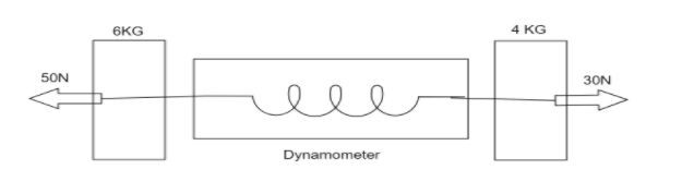 Hint In the question, masses of the two blocks are given. By using the equation of the newton’s second law of motion and substituting the known parameters in that equation, we get the value of the force recorded by the dynamometer.