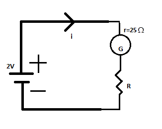 $ \Rightarrow 2V = i(3000\Omega + 25\Omega )$