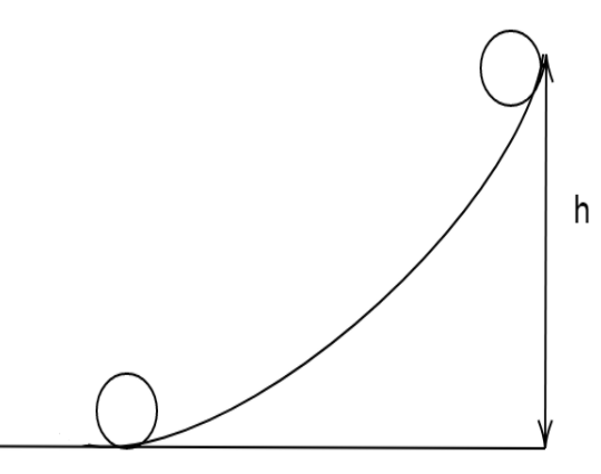 Note: We know, as the sphere rolls initially, we can say that it is in motion. Thus, the energy of a body in motion is referred to as its kinetic energy. Since the body rolls, we consider kinetic energy for rolling bodies, and as the body moves to rest, we consider the potential energy.