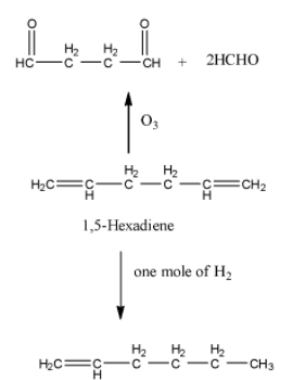-Cyclohexene ( ${{C}_{6}}{{H}_{10}}$ ) on reaction with one mole of hydrogen and forms cyclohexane and on ozonolysis forms symmetrical dialdehyde as the product. So, option A is correct.