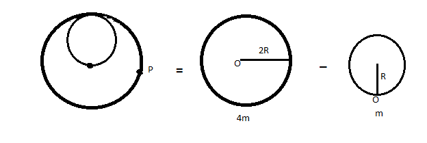 Hint: First we found the moment of inertia about O and also found out the moment of inertia about P by subtracting the moment of inertia of cavity from the total part.