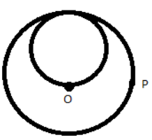 A lamina is made by removing a small disc of 2R diameter from a bigger disc of uniform mass density and radius 2R, as shown in figure. The moment of inertia of this lamina about the axis passing through O and P is ${I_o}$ and${I_p}$, respectively. Both these axes are perpendicular to the plane of the lamina. The ratio \[\dfrac{{{I_p}}}{{{I_o}}}\] to the nearest integer is: