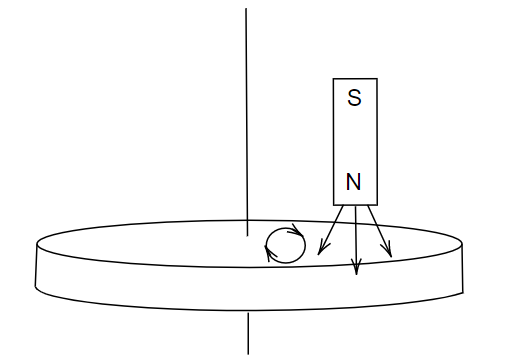 Based on Lenz’s law, the disc also tries to move in the same direction as the magnet. On the underside of the disc, due to the movement of the magnet, there is a reduction in flux. This flux change causes the production of eddy currents which leads to the generation of heat. These currents are such that they oppose the relative motion of the disc. So, the disc will rotate in the direction of the rotation of the magnet.