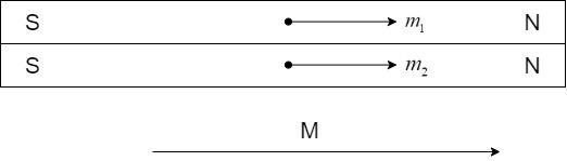 A long bar magnet of magnetic moment $6A{m^2}$ & $8A{m^2}$ can be fastened together with their axes horizontal and the centres in a vertical line about which the system is free to oscillate. Compare the time periods in the earth’s field when the axes of magnets are in the same direction, opposite direction and right angles.