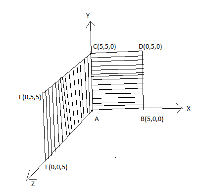 Given six corners are A (0,0,0), B (5,0,0), C (5,5,0), D (0,5,0), E (0,5,5) and F (0,0,5).