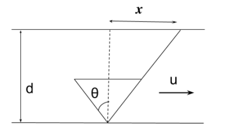 $\Rightarrow$ $x = \left( {u - v\sin \theta } \right) \times \dfrac{d}{{\cos \theta }}$