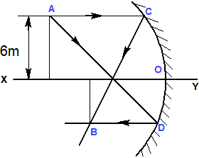 Here in the picture a ray \[\overrightarrow {AC} \] is towards the mirror. Then it is reflected by a mirror and follows the path $\overrightarrow {CB} $ . here notices that \[\overrightarrow {AC} \] is parallel to the axis of the mirror. Then passing through the focus of the mirror. Another ray $\overrightarrow {AD} $ is going towards the mirror passing through the focus.