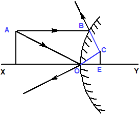 Here in the picture a ray \[\overrightarrow {AB} \] is towards the mirror. Then it is reflected by a mirror and follows the path towards infinity. here notices that \[\overrightarrow {AB} \] is parallel to the axis of the mirror. Then pass through the focus of the mirror if you extend it. Another ray $\overrightarrow {AO} $ is going towards infinity. It also happened here.