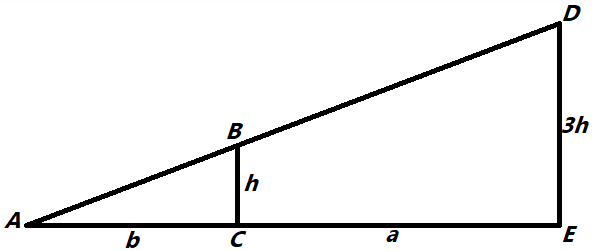 $\dfrac{{3h}}{h} = \dfrac{{a + b}}{b}$