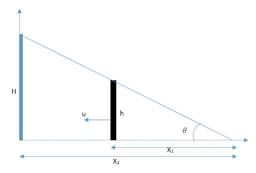 Here, \[\dfrac{{d{x_2}}}{{dt}}\] is the velocity of the edge of the shadow, let it be v