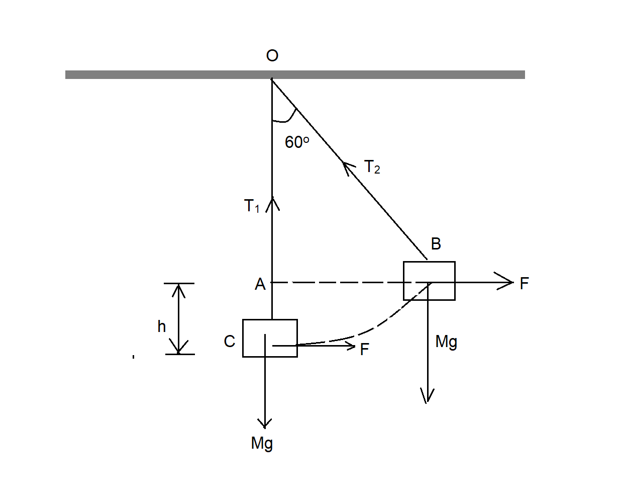 A mass $M Kg$ is suspended by a weightless string. The horizontal force required to hold the mass at ${60^o}$ with the vertical is