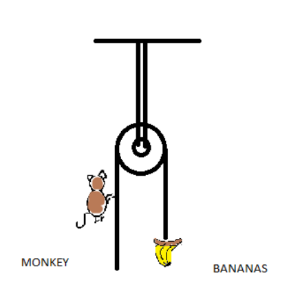 The above one is wrong because the masses of the monkey and bananas are the same as per question.