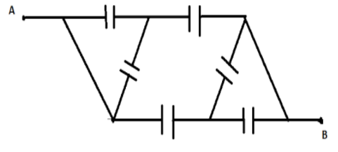 Hint: To solve this question we have first made this circuit simpler. For that we have to break the circuit in simpler parts and then solve for the capacitance in that part. After that we have to find all the capacitance connected in series and in parallel and then find the equivalent capacitance.