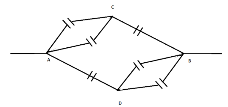 In the question, a complicated circuit diagram which consists of capacitors is given.