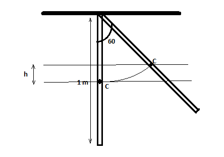 Step 3: Now, when the rod is displaced 60 degrees, then the height $h = \dfrac{l}{2}\cos \theta $ will be the resultant height. Therefore, the potential energy of the rod is