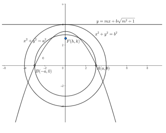 A parabola is drawn to pass through \[A\] and \[B\], the ends of a diameter of a given circle of radius \[a\] and to have as directrix a tangent to a concentric circle of radius \[b\]; the axes being \[AB\] and a perpendicular diameter, prove that the locus of the focus of the parabola is \[\dfrac{{{x}^{2}}}{{{b}^{2}}}+\dfrac{{{y}^{2}}}{{{b}^{2}}-{{a}^{2}}}=1\].
