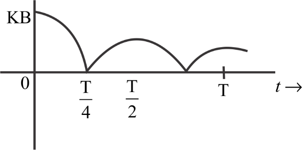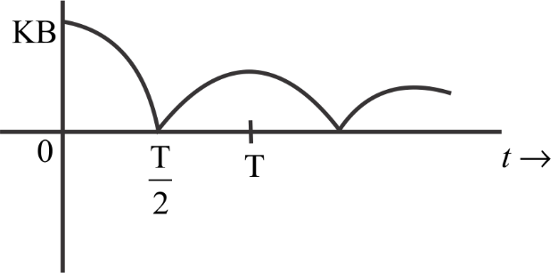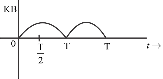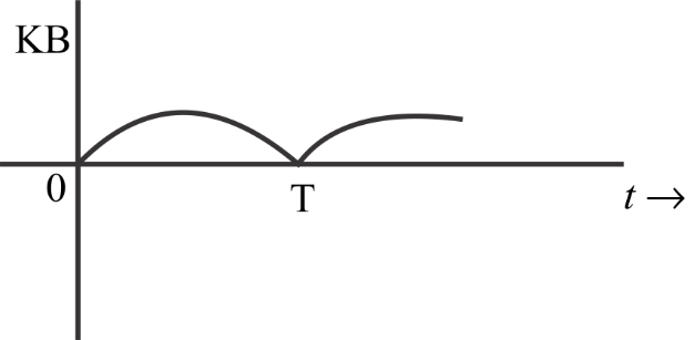 A particle is executing simple harmonic motion with a time period $T$. At the time $t = 0$, it is at its position of equilibrium. The kinetic energy-time graph of the particle will look like: