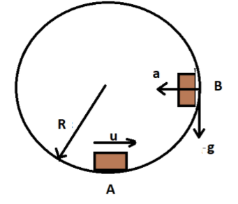 A particle is given an initial speed $u$ inside a smooth spherical shell of radius $R = 1m$ such that it is just able to complete the circle. Acceleration of the particle when its velocity is vertical is:
