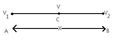 A particle moving with uniform acceleration from A to B along a straight line has velocities ${v_1}$ and ${v_2}$ at A and B, respectively. If C is the mid-point between A and B, then determine the velocity of the particle at C.
