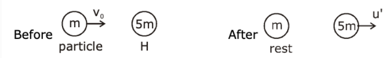 $\therefore \dfrac{1}{2}mv_{0}^{2}-\dfrac{1}{2}\times 5m\times {{v}^{2}}$