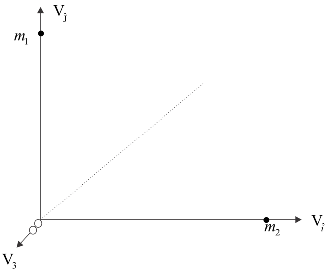 $ \Rightarrow {\vec V_3} = - \dfrac{V}{2}\left( {\hat i + \hat j} \right)$