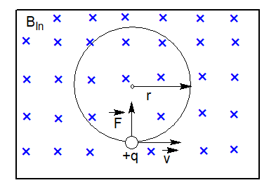 A particle experiences a magnetic force when moving through a magnetic field. When a charged particle of mass $M$ moves with velocity$\vec{v}$, perpendicular to the uniform magnetic field $B$, this particle follows the curved path until it forms a complete circular path.