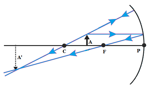 Note: We can eliminate the plane mirror as it does not form an inverted image. Also, convex mirrors are such that they form only virtual images. Their images are erect, on the other side of the mirror and diminished in size. Now considering a concave mirror, we see that it has similar image formation characteristics as stated in the question.