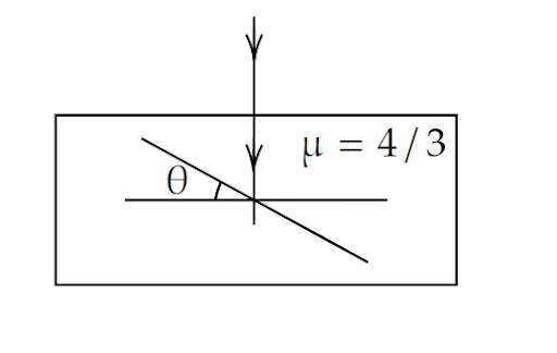 Therefore, the minimum value of \[\theta \]for which the ray does not come out of the water surface is \[\dfrac{1}{2}{\sin ^{ - 1}}\left( {\dfrac{3}{4}} \right)\].