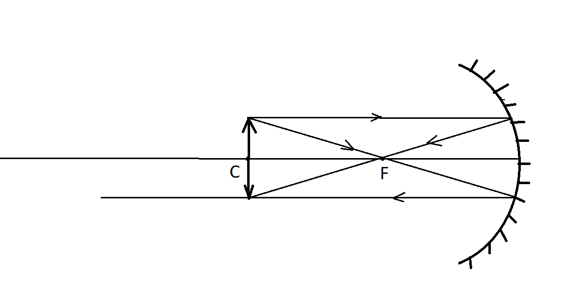 Hence, to produce a real image of the size of the object after reflection, the object must be placed at the centre of curvature of the mirror.