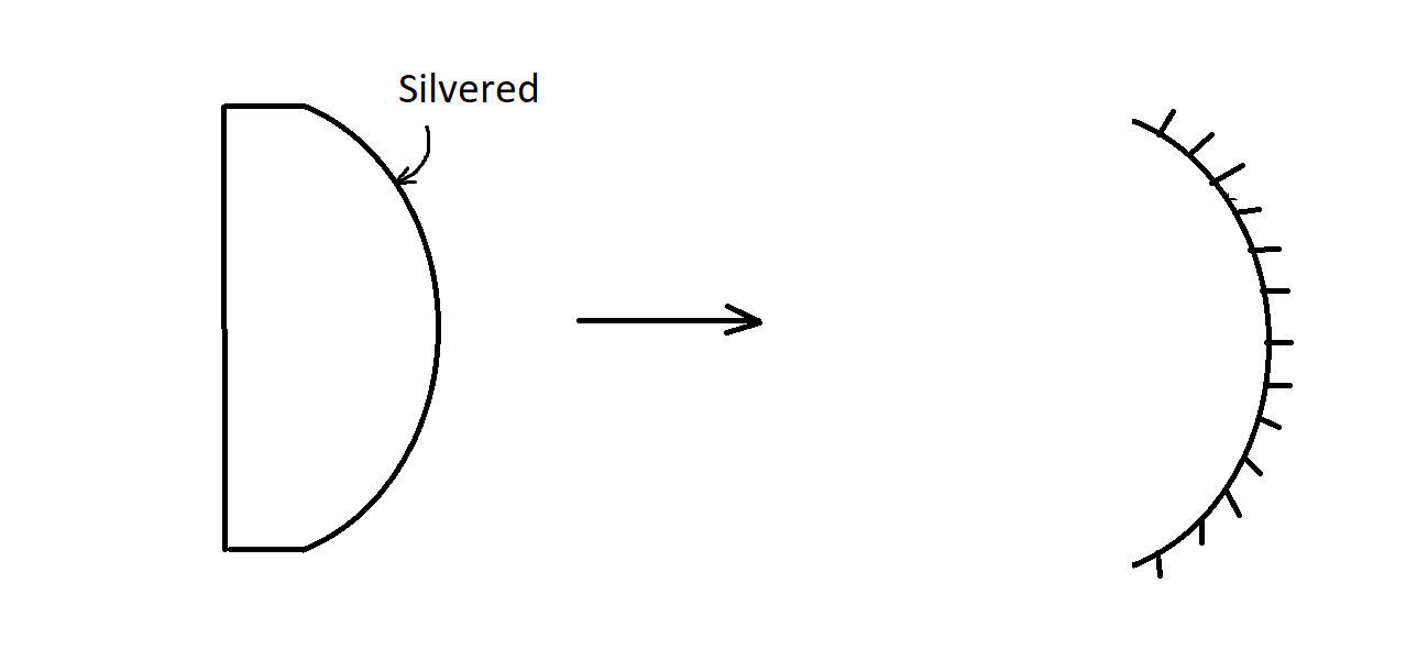 If the bulged part of the lens is coated with silver, the plano-convex lens behaves as a concave mirror with the inner surface acting as the reflecting surface.