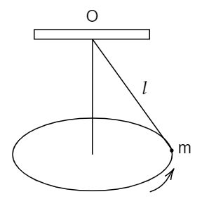 Image: A point mass m is suspended from the light thread of length fixed at O and is whirled in a horizontal circle at a constant speed.