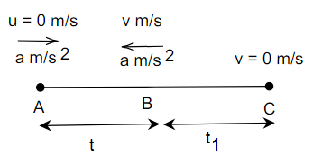 Now, the velocity of the body at point C is zero and it will return back to point A and the time taken is $t_2$. From C to A