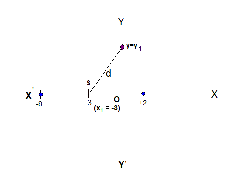 $d=\sqrt{{{({{y}_{1}})}^{2}}+{{(-3)}^{2}}}$