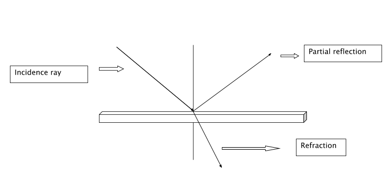 Hint: As the medium of propagation of light is changing, this would lead to a refractive index of mediums and hence the light will change in the path depending on respective refractive indices. When the light ray returns back in the same medium, this is reflection. Use this law for partially reflected and Snell’s law for refracted rays.