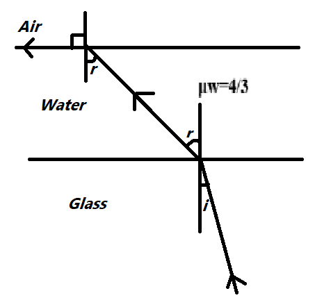 ${}_g^w\mu = \dfrac{{\sin r}}{{\sin i}} = \dfrac{{{}_g\mu }}{{{}_w\mu }}....(i)$