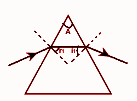 \[A = {r_1} + {i_2}\] where \[A\] is the angle of prism, \[{r_1}\] is the angle of refraction from the first face, and \[{i_2}\] is the angle of incidence on the second face.