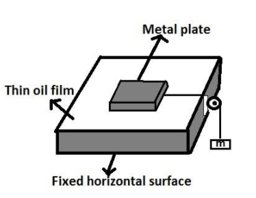 It has been given that a rectangular metal plate has dimensions of 10 cm × 20 cm and is separated from a fixed horizontal surface by a thin film of oil. The separation between the rectangular plate and the horizontal surface is $0.2mm$.