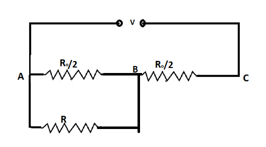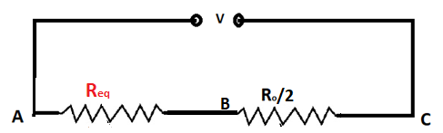 \[\dfrac{1}{{{R_{eq}}}} = \dfrac{1}{{\dfrac{{{R_0}}}{2}}} + \dfrac{1}{R}\]