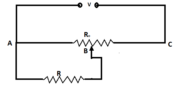 And we need to derive an equation for voltage Across when the sliding contact is at the center i.e. at B .