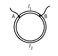 When we consider the whole ring as two sub circuits between the two points A and B, we can see that these two circuits are in a parallel connection.