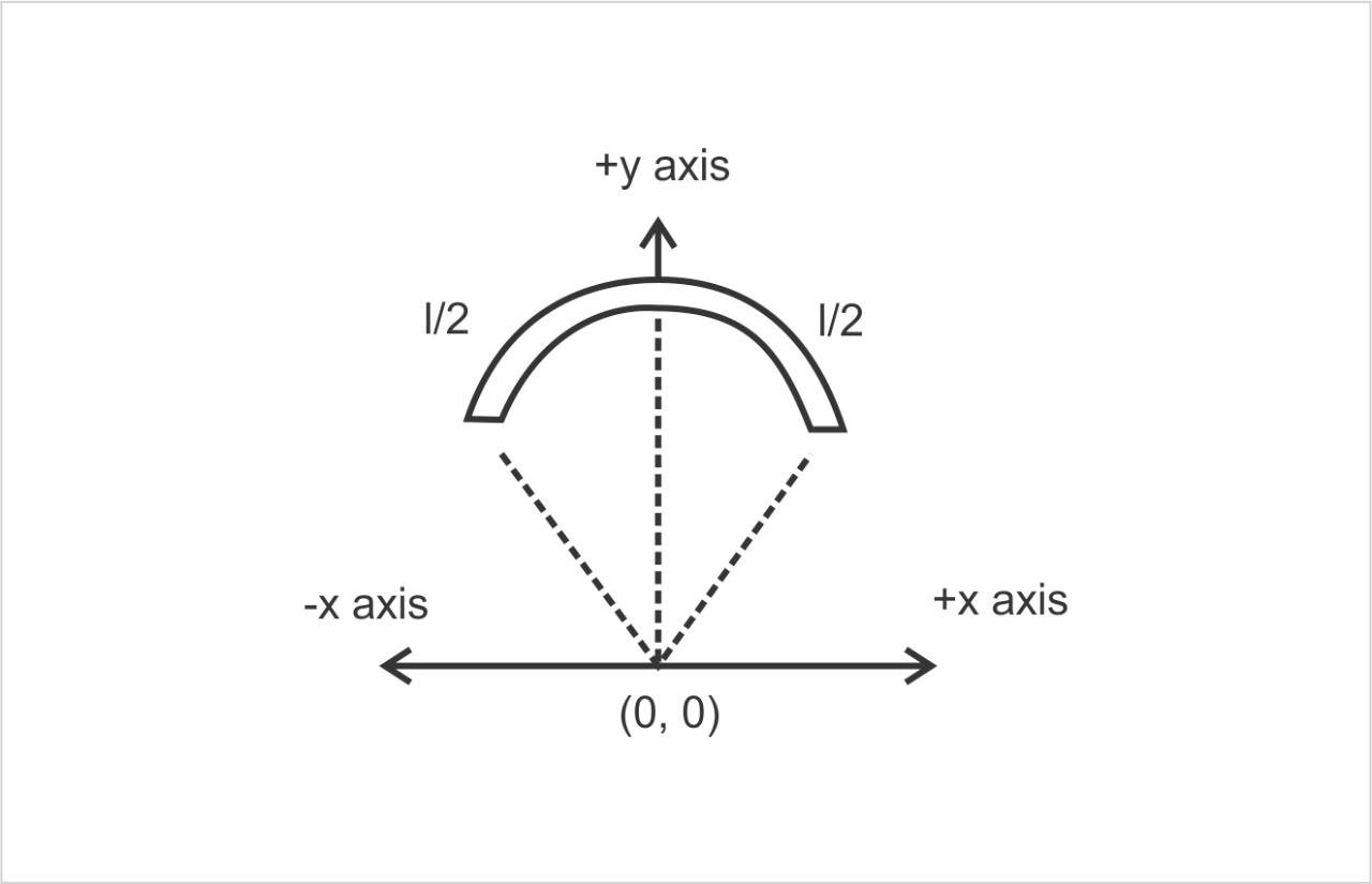 When the rod is bend in equally two parts, each part will have length \[\dfrac{l}{2}\]and its centre of mass will be in \[\dfrac{l}{4}\] and mass will also be distributed equally, that is, \[\dfrac{m}{2}\].