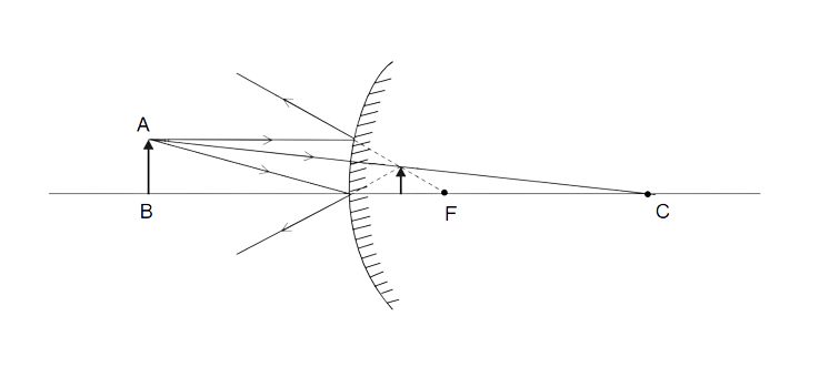Therefore we can say option B. is correct, the image is virtual and on the opposite side of the convex mirror.