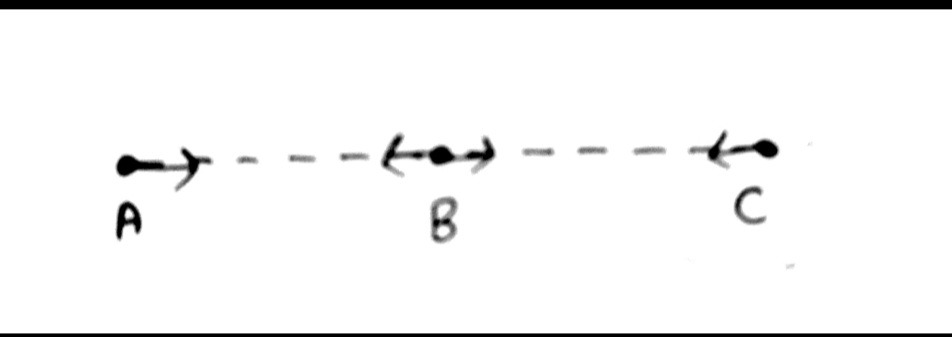 $s = A\sin \omega t$ where A is the amplitude or maximum displacement possible, w is the angular frequency and t is the time take to reach there so, by considering this formula our motion becomes like to and fro like in the diagram given where particle moves from B to C , then C to B , B to A , then back to B and this is called one complete cycle.