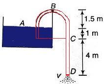 Equate the Bernoulli’s equation for two points A and D, Find v