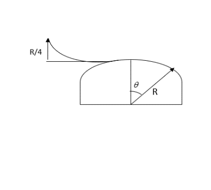 A skier plans to ski a smoothly fixed hemisphere of the radius $R$. He starts from rest from a curved smooth surface of height $\dfrac{R}{4}$. The angle $\theta $ at which he leaves the hemisphere is: