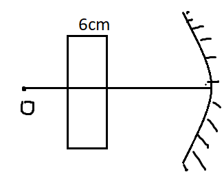 A slab of glass, of thickness 6 cm and refractive index \[\mu = 1.5\] is placed in front of a concave mirror as shown in the figure. If the radius of curvature of the mirror is 40 cm and the reflected image coincides with the object, then the distance of the object from the mirror is.