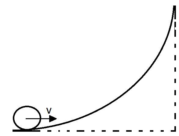 As the object rolls up the curved path the sum of its kinetic energies will gradually be converting into potential energy. And at the top point, all the kinetic energy will be transformed into potential energy.