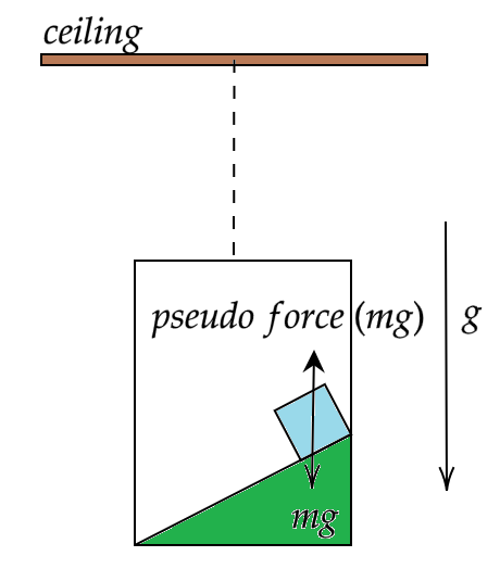 In the given question, we were told that the block takes time T to come down to the bottom of the wedge. We don’t need that data as we used a logical approach to arrive at the solution. A pseudo force is a virtual force, also known as inertial force. It is applied when we are observing a system from a non-inertial frame. Any frame of reference that moves with any acceleration is considered a non-inertial frame, as in the case of the given question, the chamber supporting the wedge is a non-inertial frame.