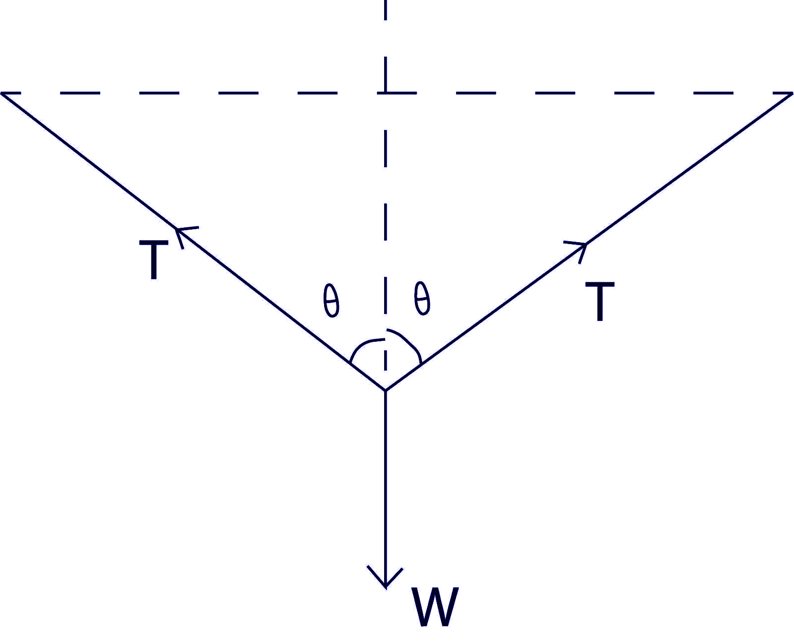 $T=$ \[\dfrac{W}{2}\].................(1)