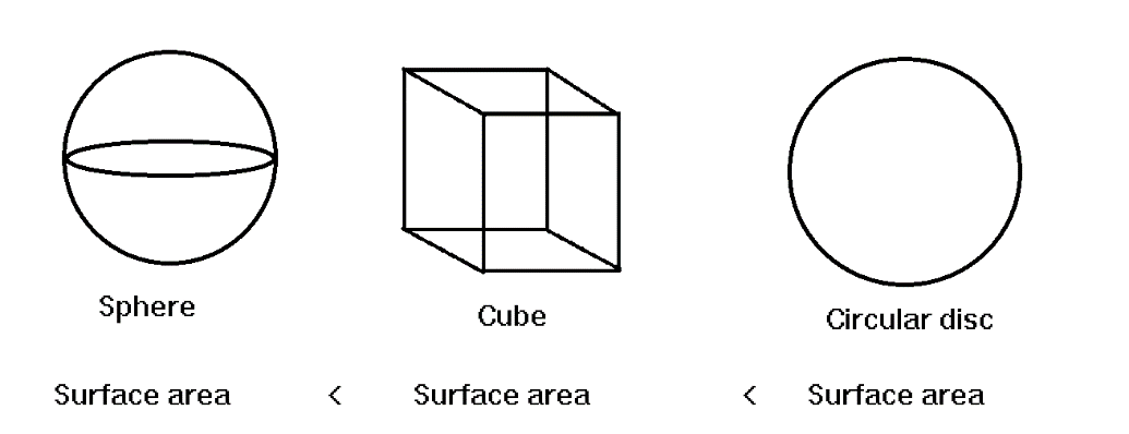 But if we discuss the surface then we can see that the surface area of the disc is more than the cube and the surface area of the cube is more than the sphere.